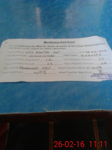 | Attendance Register | Head Teacher | MEA with School | Visit Proof |