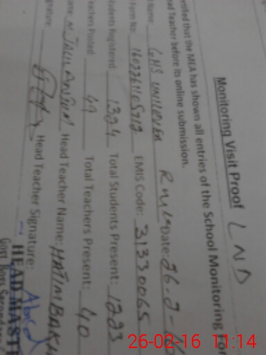 | EMIS Code: 31330065 | Name of School: GHS UNILEVER R.Y.KHAN | |||