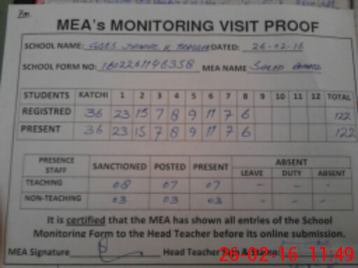 | Attendance Register | Head Teacher | MEA with School | Visit Proof |
