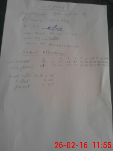 | Monitoring Date: 26-02-2016 | Start Time: 26-02-2016 11:21 AM | End Time: 26-02-2016 12:01 PM | Name of MEA: Z.**** Ba**** Al**** | |