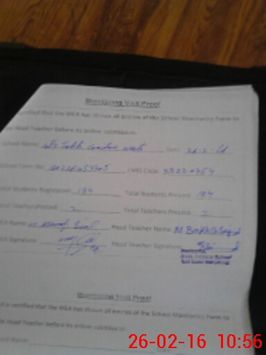 | Attendance Register | Head Teacher | MEA with School | Visit Proof |