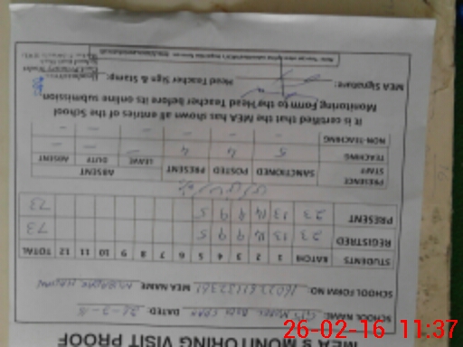 | Attendance Register | Head Teacher | MEA with School | Visit Proof |