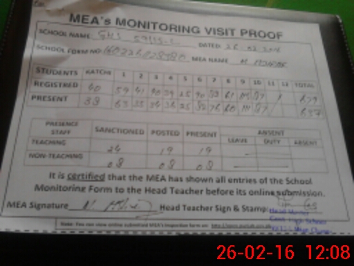 | Certified that this School was Inspected by the Undersigned MEA/DMO Today and the Information Stated Above is as Per Record. | |||||
