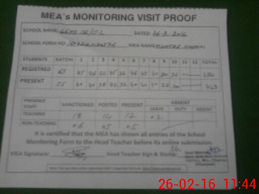 | Certified that this School was Inspected by the Undersigned MEA/DMO Today and the Information Stated Above is as Per Record. | |||||