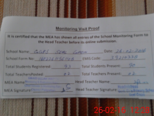 | EMIS Code: 39210338 | Name of School: GGPS SEEL GAON | |||