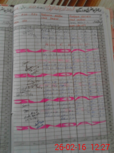 | CNIC | Full Name | Designation | R/C | Absence During Last Calender Month |