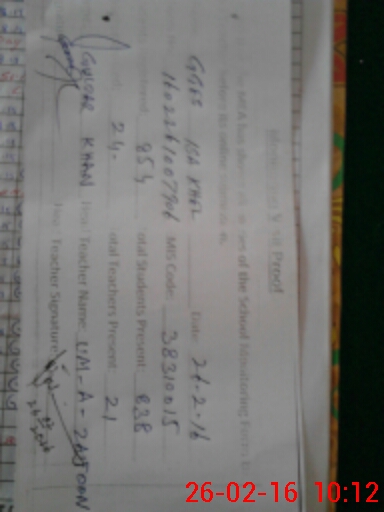 | Monitoring Date: 26-02-2016 | Start Time: 26-02-2016 09:28 AM | End Time: 26-02-2016 10:14 AM | Name of MEA: Gu**** Hu**** Kh**** | |