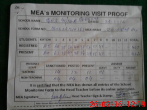 | Certified that this School was Inspected by the Undersigned MEA/DMO Today and the Information Stated Above is as Per Record. | |||||