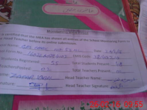 | EMIS Code: 38140210 | Name of School: GPS CHAK NO 53 ML | |||