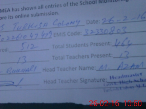 | EMIS Code: 32330803 | Name of School: GHS TURKISH COLONY MUZAFFARGARH | |||