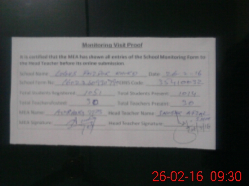 | Certified that this School was Inspected by the Undersigned MEA/DMO Today and the Information Stated Above is as Per Record. | |||||