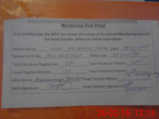 | Attendance Register | Head Teacher | MEA with School | Visit Proof |