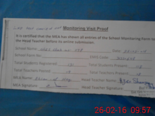 | Attendance Register | Head Teacher | MEA with School | Visit Proof |