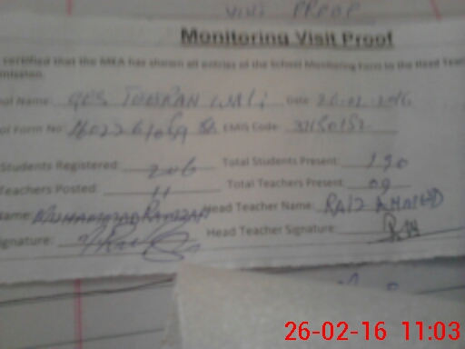 | Attendance Register | Head Teacher | MEA with School | Visit Proof |