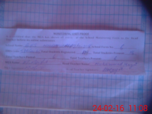 | Attendance Register | Head Teacher | MEA with School | Visit Proof |