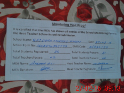 | EMIS Code: 35430559 | Name of School: GPS DERA MURED KHAN | |||