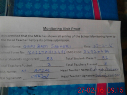 | EMIS Code: 32320484 | Name of School: GGPS BASTI SADHARI | |||