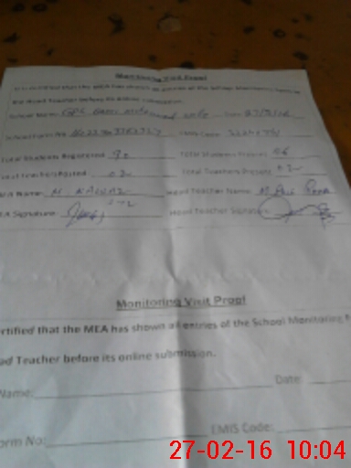 | Certified that this School was Inspected by the Undersigned MEA/DMO Today and the Information Stated Above is as Per Record. | |||||