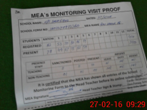 | Attendance Register | Head Teacher | MEA with School | Visit Proof |