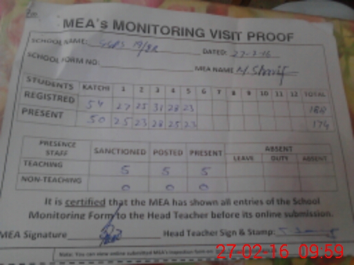 | Certified that this School was Inspected by the Undersigned MEA/DMO Today and the Information Stated Above is as Per Record. | |||||