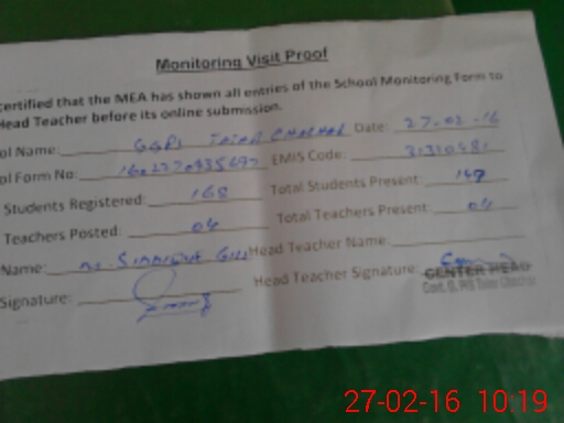 | EMIS Code: 31310481 | Name of School: GGPS TATAR CHACHAR | |||