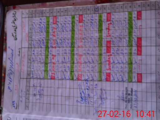 | CNIC | Full Name | Designation | R/C | Absence During Last Calender Month |