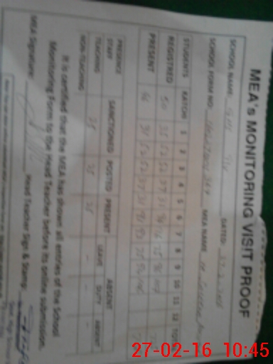 | Monitoring Date: 27-02-2016 | Start Time: 27-02-2016 10:01 AM | End Time: 27-02-2016 10:46 AM | Name of MEA: MU**** SA**** AK**** 13**** | |