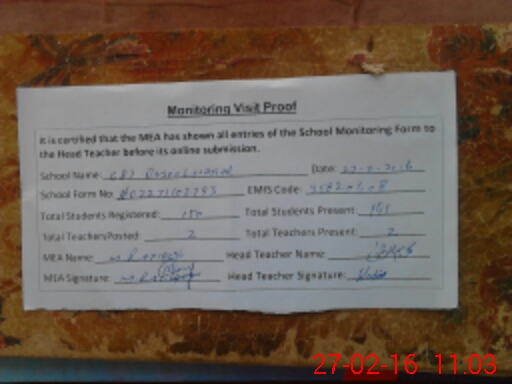 | Attendance Register | Head Teacher | MEA with School | Visit Proof |