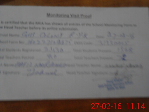 | Monitoring Date: 27-02-2016 | Start Time: 27-02-2016 08:57 AM | End Time: 27-02-2016 11:16 AM | Name of MEA: Mu**** Ah**** | |