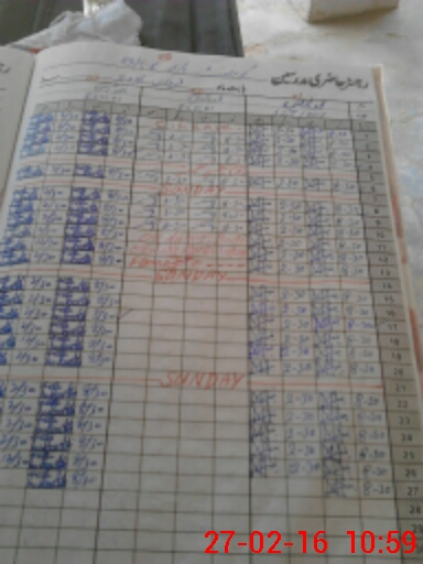 | CNIC | Full Name | Designation | R/C | Absence During Last Calender Month |
