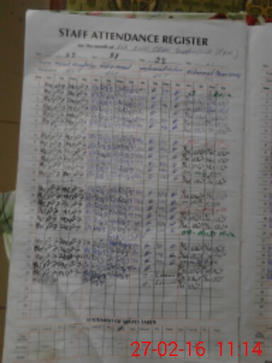 | Remarks (Use Separate Page if Required): Record of FTF not maintain properly And leave application of teacher M Aslam non in school only mark c leave on attendance register in front of me at 1010am dated mark c leave 26 27 02 2016 | |||||