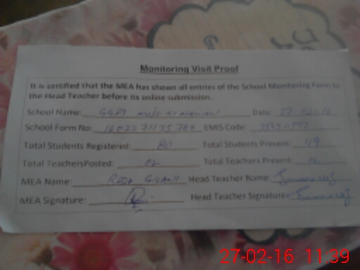 | Attendance Register | Head Teacher | MEA with School | Visit Proof |