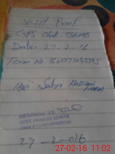 | EMIS Code: 38220079 | Name of School: GPS CHAK NO. 13-A/MB | |||