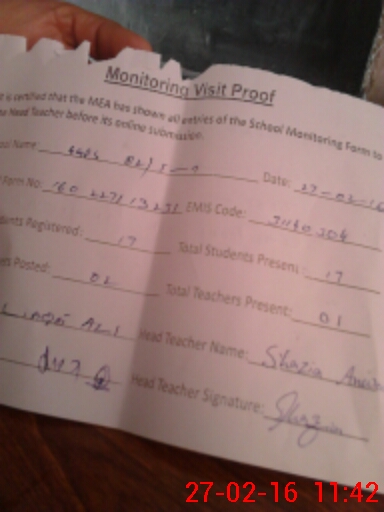 | Attendance Register | Head Teacher | MEA with School | Visit Proof |