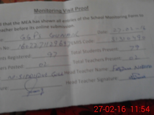 | Certified that this School was Inspected by the Undersigned MEA/DMO Today and the Information Stated Above is as Per Record. | |||||