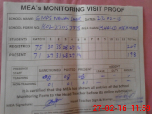 | Certified that this School was Inspected by the Undersigned MEA/DMO Today and the Information Stated Above is as Per Record. | |||||