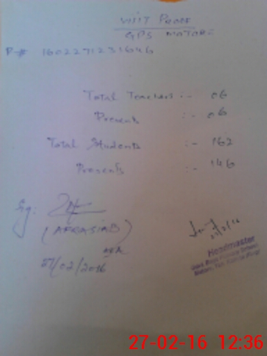| Attendance Register | Head Teacher | MEA with School | Visit Proof |