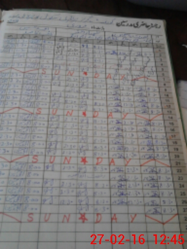 | CNIC | Full Name | Designation | R/C | Absence During Last Calender Month |