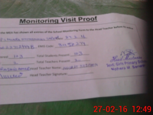| Attendance Register | Head Teacher | MEA with School | Visit Proof |