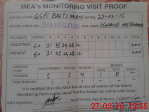| EMIS Code: 36410440 | Name of School: GGPS BASTI MIANI, ABDUL HAKIM | |||