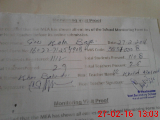 | EMIS Code: 38310008 | Name of School: GHS KALA BAGH | |||
