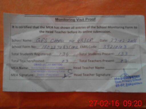 | EMIS Code: 39210103 | Name of School: GPS 48/SP P.O 8/S.P PAKPATTAN | |||