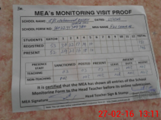 | Certified that this School was Inspected by the Undersigned MEA/DMO Today and the Information Stated Above is as Per Record. | |||||