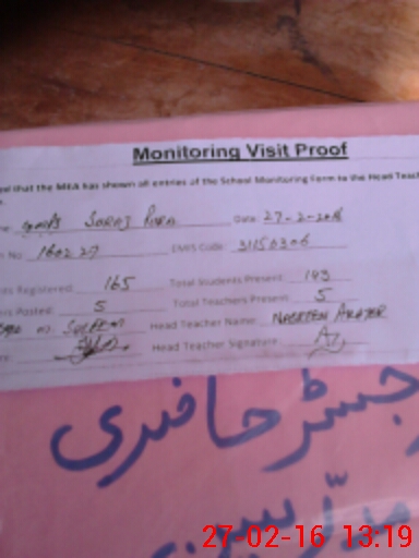| Attendance Register | Head Teacher | MEA with School | Visit Proof |