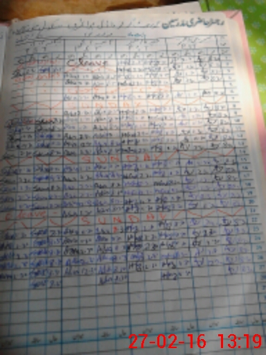 | CNIC | Full Name | Designation | R/C | Absence During Last Calender Month |
