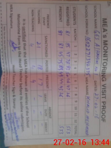 | Attendance Register | Head Teacher | MEA with School | Visit Proof |