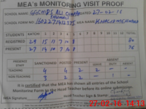 | EMIS Code: 36410474 | Name of School: GGCMS ALI CHAPPA SHUMALI ABDUL HAKIM | |||