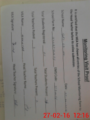 | Monitoring Date: 27-02-2016 | Start Time: 27-02-2016 12:02 PM | End Time: 27-02-2016 12:18 PM | Name of MEA: Mu**** ah**** BN**** 29 | |