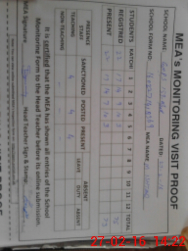 | Attendance Register | Head Teacher | MEA with School | Visit Proof |
