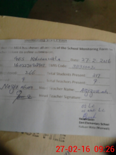 | EMIS Code: 38310020 | Name of School: GES KALLUAN WALA ISA KHEL | |||